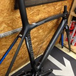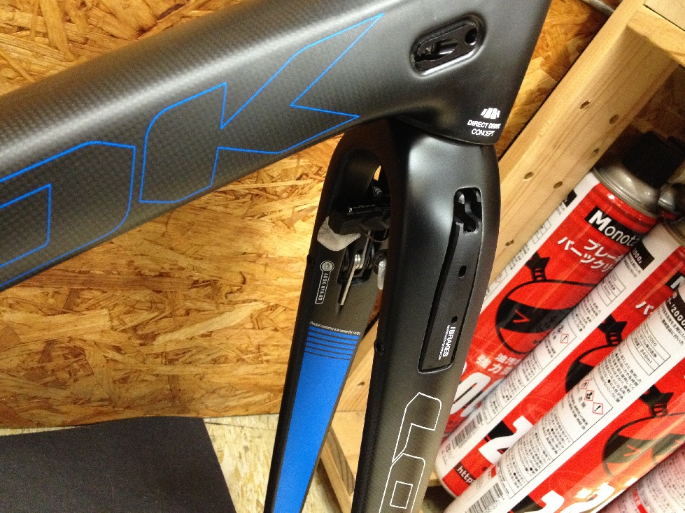 フロントブレーキのくり抜き穴は一瞬フォークの剛性を不安にさせますが、実際乗ると剛性不足など微塵も感じさせず、フォークの爪の先からヘッド・BB・リアエンドに至るまで一体となった素晴らしい剛性バランスで、心地良い加速感を味わえます。