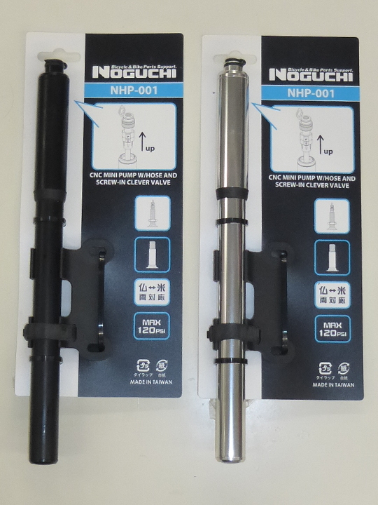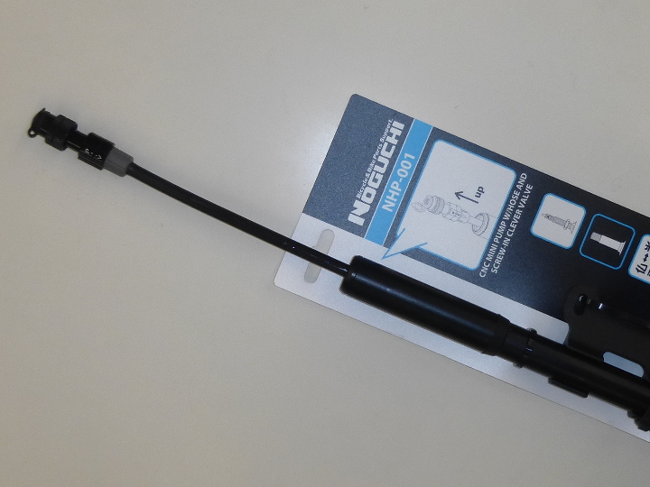 ホースが伸縮し、米式/仏式がワンタッチで切り替え可能なミニポンプ。