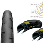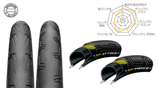 より負荷のかかるリアタイヤにはフロントよりも若干太めの24C サイズとし、 加重バランスに見合ったエアボリュームと、磨耗に強いコンパウンドを採用。