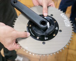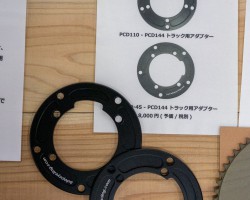 PCD110の5穴のクランクや現行のシマノ4穴クランクにPCD144のトラック用チェーンリングを取り付けるためのアダプター。