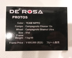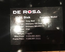 伝統のラグ付クロモリモデルは基本設計に変更無く、今回展示が無かったNEO PRIMATOも含めてクロモリモデルはデローザの大事な伝統として今後も変わることなく作り続けていくということでした。ロゴはしっかり新しくなってます。