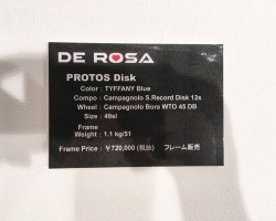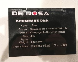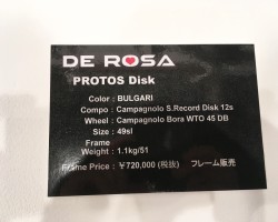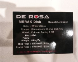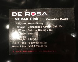 数年前にあったMERAKとは全く異なる、フレーム単体800g台のデローザには珍しい超軽量バイク。今回の展示会ではケーブルフル内装のディスクブレーキモデルのみの発表でしたが、リムブレーキモデルも発売予定。