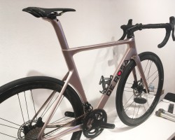 プロユースのカーボンレーシングモデル。リムブレーキとディスクブレーキ両方あります。リムブレーキタイプフレーム価格750,600円、ディスクブレーキタイプフレーム価格777,600円(いずれも税込)