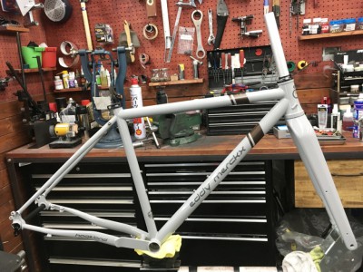 というオーソドックスな仕様で、ダウンチューブ下やトップチューブ上、フォーク横など様々な場所にダボも装備されており、ブルべ等ロングライドにも最適です。