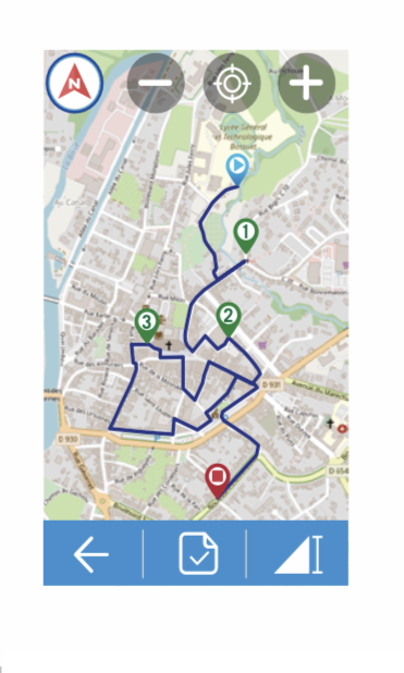 デバイス上で目的地、経由地を設定しルートを作成し、ナビ機能を使えます。