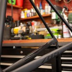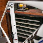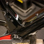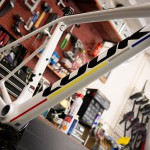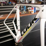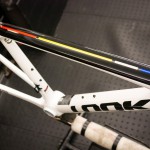 XSサイズです。モンドリアンカラーがトップチューブとダウンチューブにちりばめられています。
