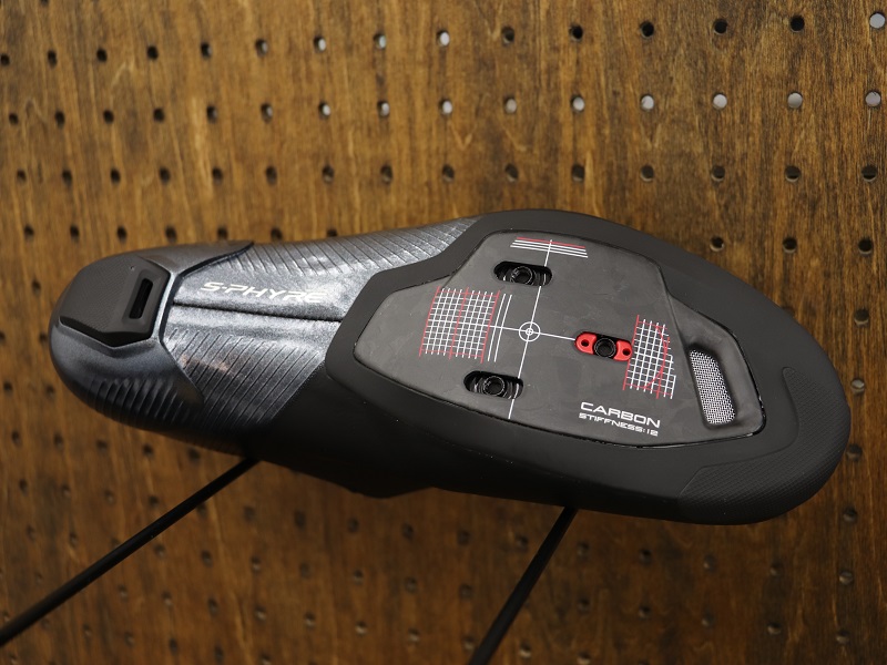 カーボン製のソールは、シマノのシューズでは一番硬いとされている剛性指数12。