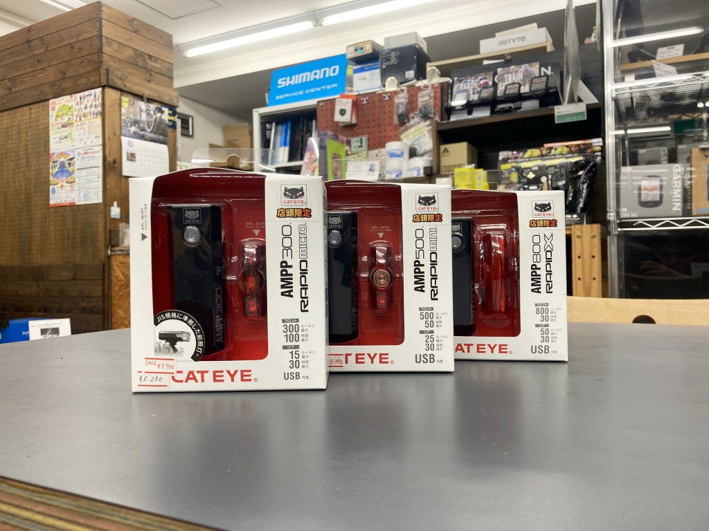 ライドの際には必須のアイテム、CATEYE(キャットアイ)の高性能充電式LEDライト前後セットを差し上げます!