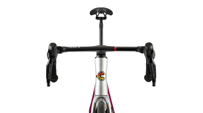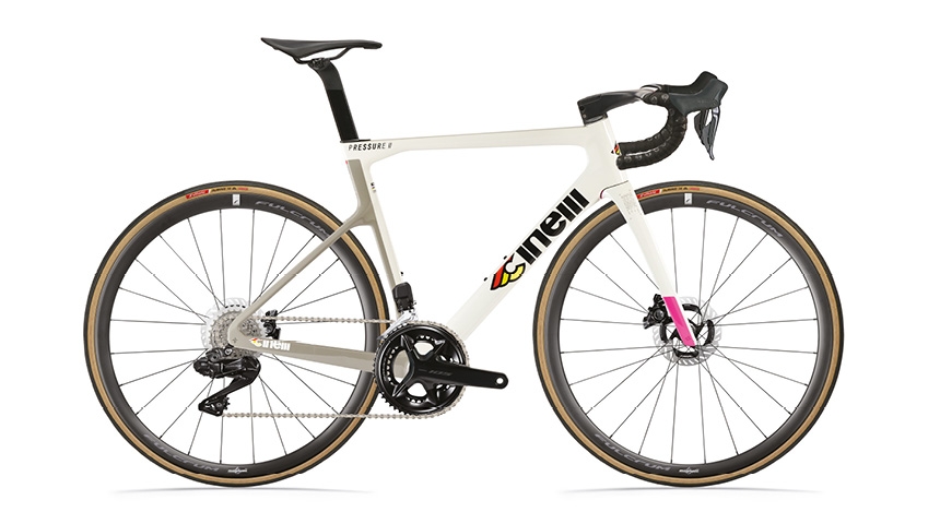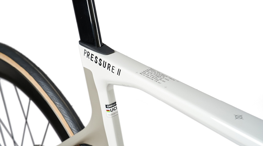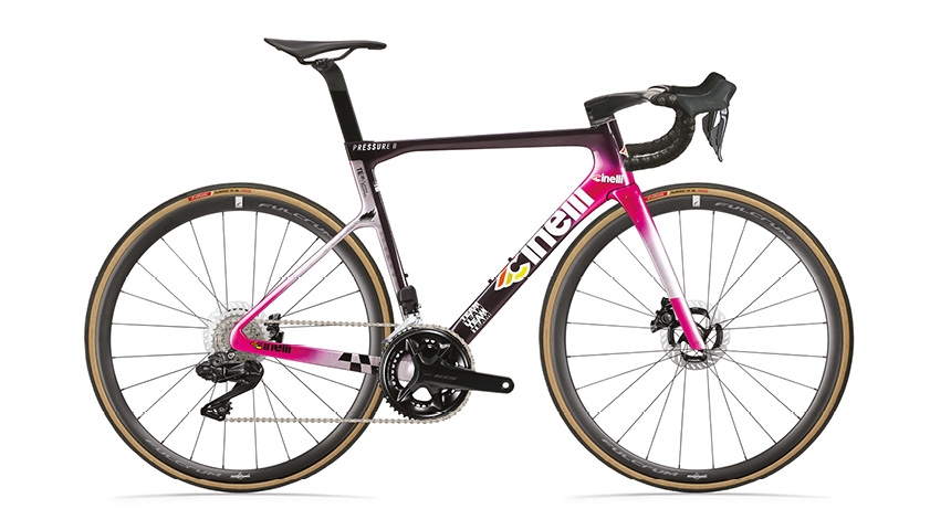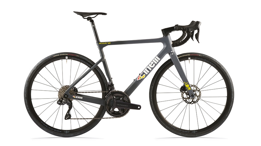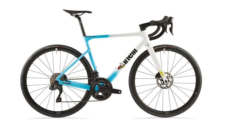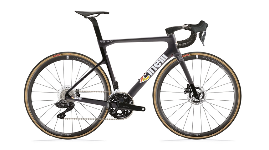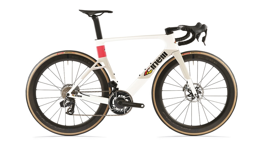 チネリロードバイクのレース用中核モデル。チネリの開発チームとプロ選手が協力して、軽量化・レースで通用する剛性・機材としての信頼性・安定性が最適にバランスされるよう作られました。