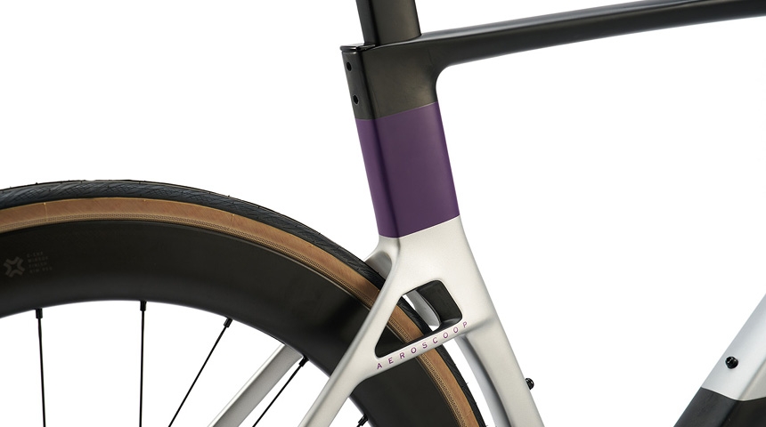エアロロードバイクのNewモデル。再設計された大胆なデザインのシートステーは、ダブルアームデザインで中央部に空気の通り道を設け、空気抵抗の大幅な向上を実現しました。また、FEM(有限要素法)解析によって細部で発生する現象から全体の挙動を計算し、横方向の剛性と縦方向の柔らかさを両立させながら応答性を向上させることで、スムーズな乗り心地を実現しました。