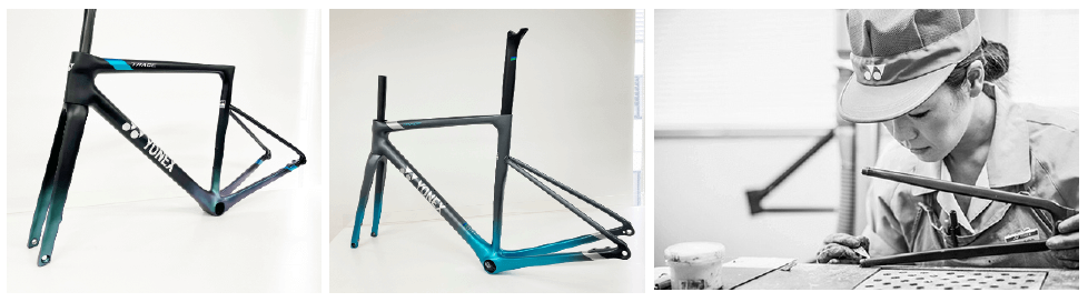 本来、塗装の仕上がりと軽量化は相反する要素ですが1台ずつ新潟の自社工場で熟練職人が手掛けることにより可能になるYONEXならではの技術です。