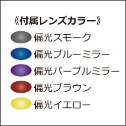 跳ね上げタイプで、5種類のレンズは全て偏光タイプです。