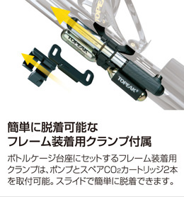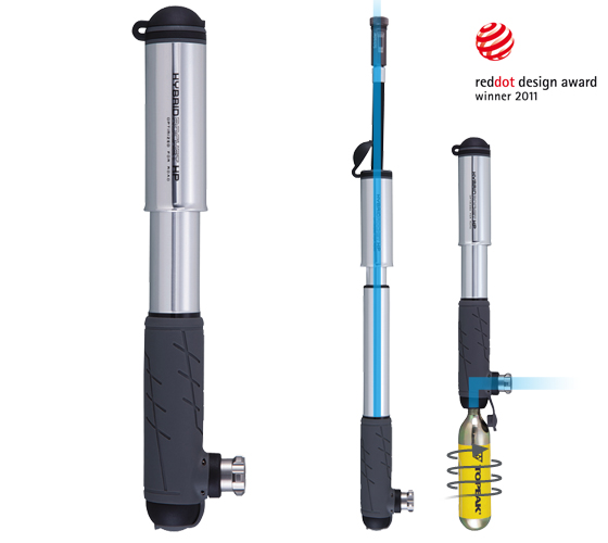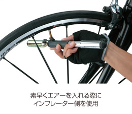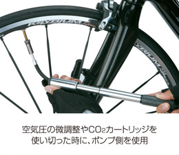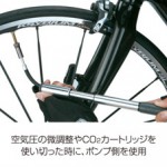 CO2インフレーター機能を搭載したホース付き携帯ポンプ。