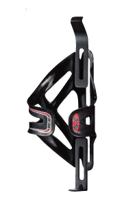 小さいフレームなどでサイドからボトルを取り出しやすい構造の軽量カーボンボトルゲージ。3ピース構造で本体部分は左右どちら向きにもできるので、右利き左利きを問わず使用できます。