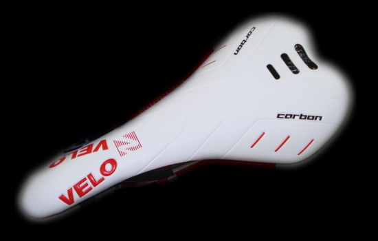 ホワイトカラーにワンポイントのレッドがカッコイイ軽量サドル。