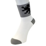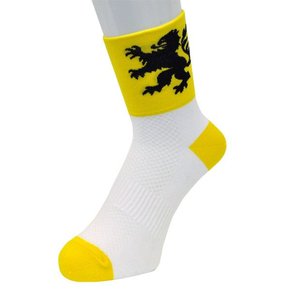 ベルギー・フランドル地方の紋章に用いられるライオンマークを足首にあしらったデザインのソックスです。