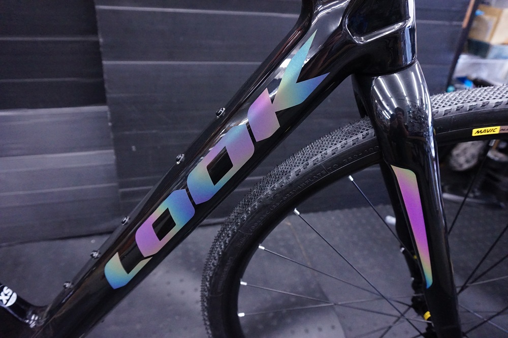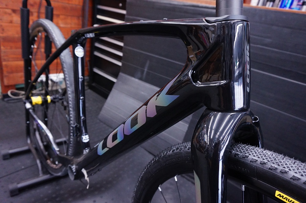 ただ「GRAVEL」という名称が入ってしまったので、どうしてもグラベルロードの印象が強くなってしまったのと、LOOKの中でも大人気のカラーリングであるモンドリアン(黒+赤青黄もしくは白+赤青黄)では無かったので今一引き合いが無かったのですが、乗ってみるとカタログ重量(Mサイズ フレーム1,200g+フォーク390g)からは想像できないほどにかなり軽快に加速します。
