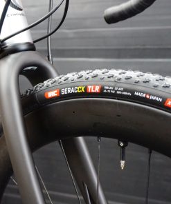 選択可能なFフォークはUCI認証のOBS-CBD1.25TH。カラーは美しいメタリックシルバーでオーダーして輝きを長く保てるように「ガラスの鎧」を施工。バーテープにはブラケットカバーと同じエラストマー素材を使用してハイグリップかつ耐久性に優れたSHAKES the TAPES、タイヤは初めてのCXということで耐パンク性優先でIRC SERAC CXのX-GUARD仕様と、隅々までこだわりのパーツ選択になっています。