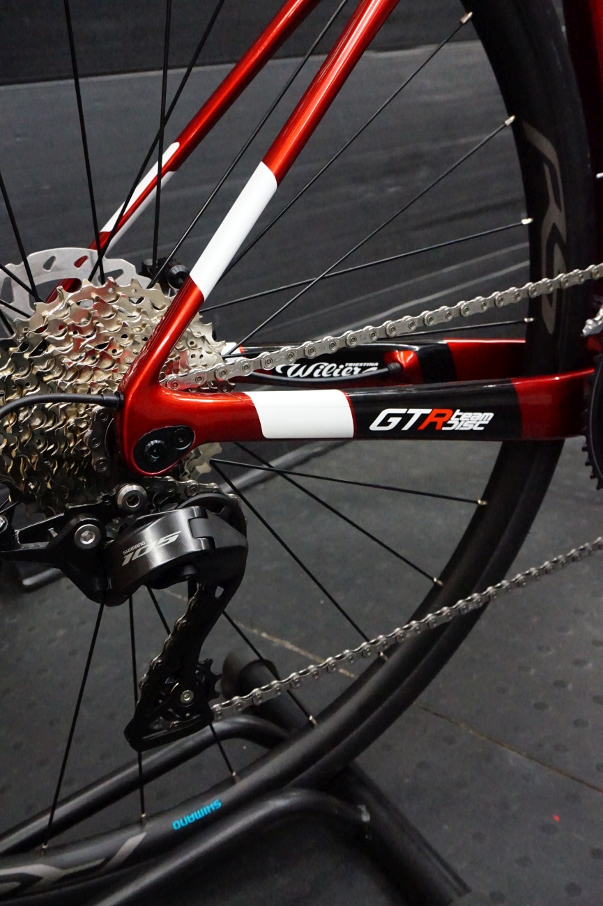 初めてのロードバイクを購入希望のお客様。既にロードバイクを楽しんでいる先輩方が周りにいらっしゃるそうで、コストパフォーマンスに優れるGTR Team DISCがいいよ!と強くおすすめされて、もうこのモデル一択ということでご来店頂きました。