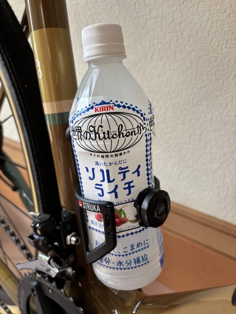 今までグラベルバイクのシートチューブにはボトルケージを付けていなかったのですが流石にここまで暑いとボトルを2本持って走りたいので、去年発売されてから気になっていたELITEのSTRUKAをつけてみました。