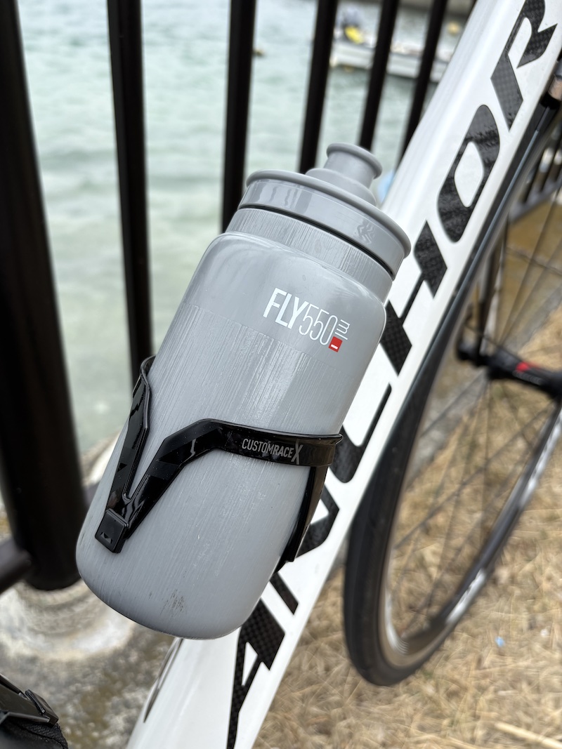 MTBやグラベルバイクのコンパクトな前三角に対応するため、ボトルを横方向から挿入しやすいように設計したロープロファイルデザインを採用したとの事ですが確かに横方向からもスッとボトルが入り、固定力もしっかりあります。