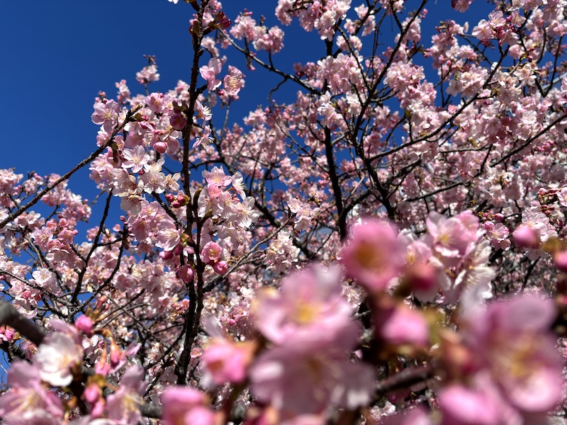 Miura Peninsula日記 三浦海岸の河津桜 2026/2/3 tabira 2026年2月3日2026年2月3日 0 Comments 三浦海岸、河津桜 今日は、節分の日 風は、強めでしたが寒さも和らぎ日中は、暖かさを感じる1日でした。 小径車で少しだけ三浦海岸へ 河津桜を見に行きましたが陽気に誘われて開花が進んでいました。 駅前や小松ヶ池公園の屋台などは、まだ設営が終わっていませんでした。 今週末からは再び冷え込むようなので満開になるのは来週以降になりそうですね。
