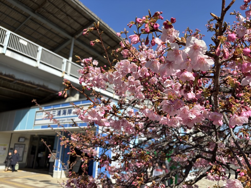 Miura Peninsula日記 三浦海岸の河津桜 2026/2/10 tabira 2026年2月10日 0 Comments 三浦海岸、河津桜 今日は、農道グラベルライドへ キャベツの向こうに富士山 三浦海岸駅前の桜も満開に近づいてきました。 線路沿いの桜並木もあと少しで見頃を迎えそうです。 明日は、あいにくの雨予報が出ています。 花が散らなければ良いのですが。 海岸の大根干しもほぼ終了 のんびりと海を眺めるのに良い季節が近づいています。