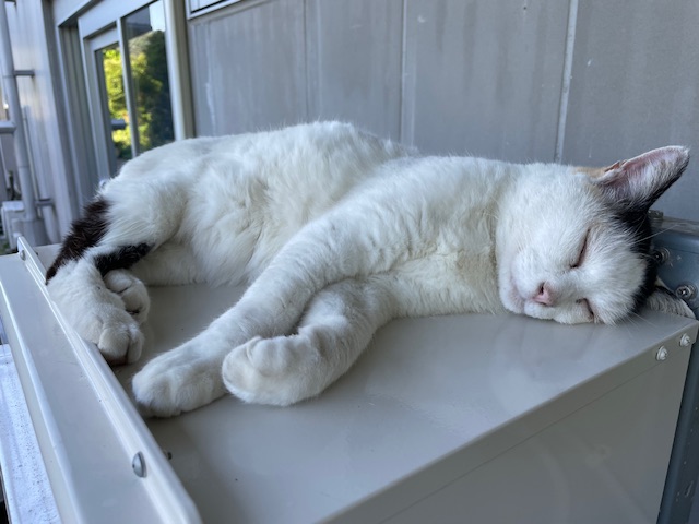 途中立ち寄った「道の駅 保田小学校」では警備員と思われる猫がいました。