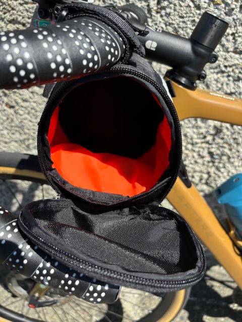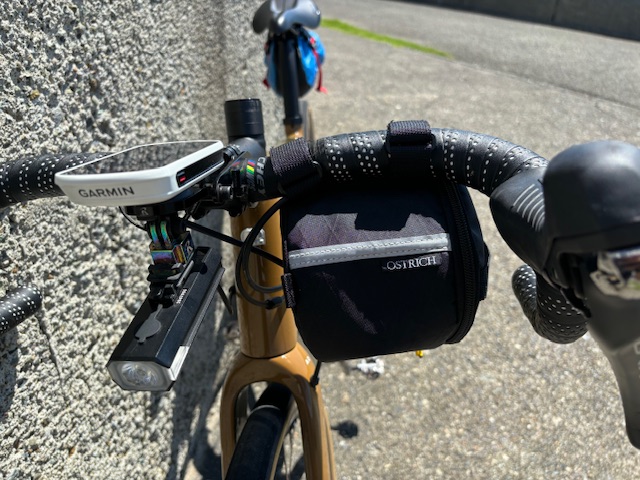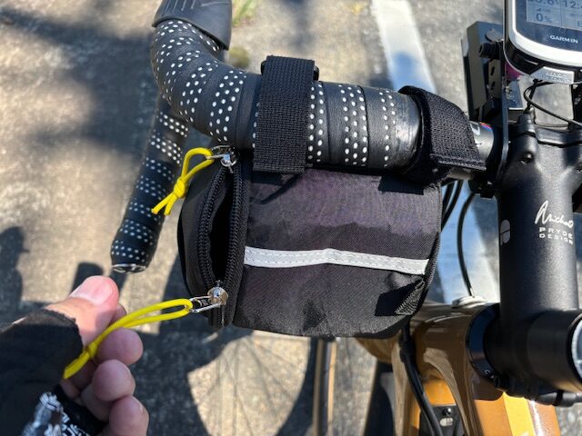 ライトとサイコンに干渉せずに取り付けられるフロントバッグですが