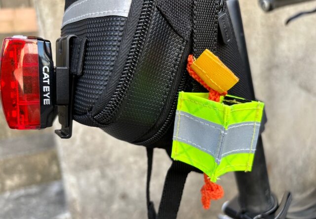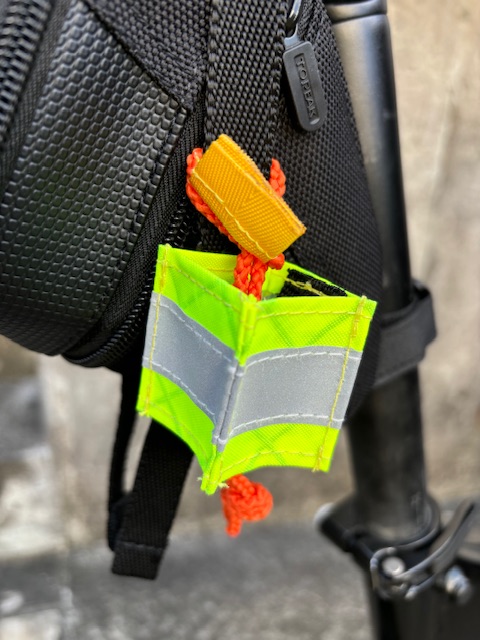 日が暮れるのが早くなったので視認性を高めるためにサドルバッグ横にオーストリッチのぶら下げるリフレクター(ランタンルージュ)を取り付けてみました。